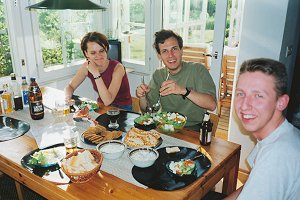 Suunnitelmien muuttumisen vuoksi oma juhannukseni meni pienemmässä porukassa Liedossa. Aattoilta oli riittävän lämmin grillaukseen ja olemiseen muuten vaan. Vasemmalta Hanna, Teemu ja minä. Kameran takana, kas, Mikko. |